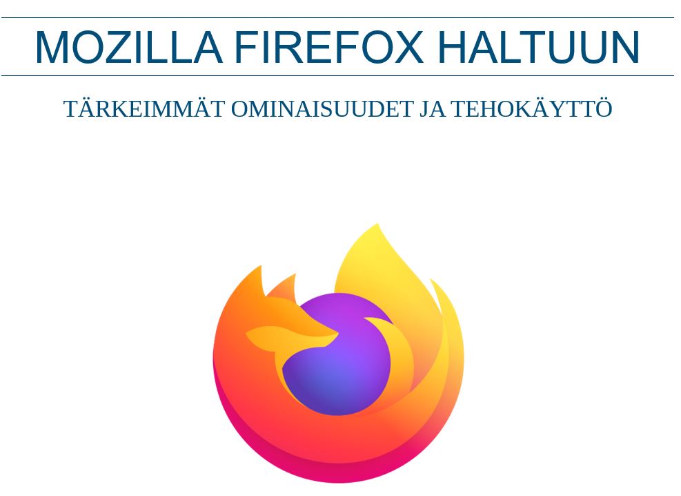 Mozilla Firefox perusteet haltuun. Saat oppaan uutiskirjeenä sähköpostiin. Voit perua uutiskirjeen koska tahansa.